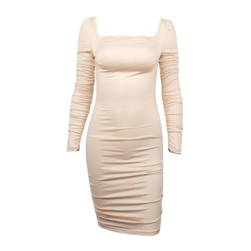 2022 European and American women's clothing Amazon sexy slim pleated hip skirt solid color fashion tight backless dress women